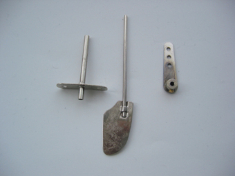 舵鞘と舵軸は、PT-15の船内の大きさに合うように 少々切断して使いました。 |