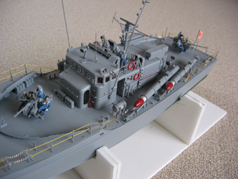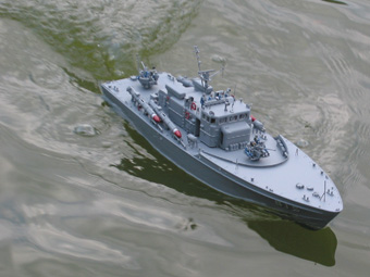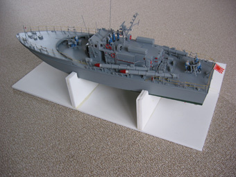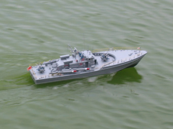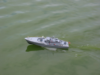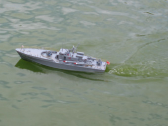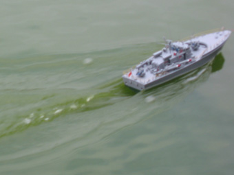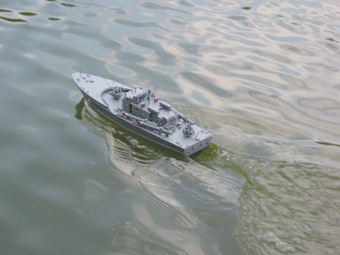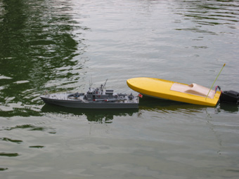 動画ファイル1へのリンク (大きさ1.2MB) 動画ファイル2へのリンク (大きさ1.83MB) いずれもMPEG1形式です Windowsの方は右クリックで対象をファイルに 保存してご覧ください 1のファイルでは、ほぼ1ページ目の箱絵のような 走航姿勢になっていると思います 2のファイルでは旋回の様子がありますが 以前のシングルラジコンサーボ時代のような 船の動きが少々気に入っています (尻振り動作は無いですが) |