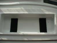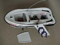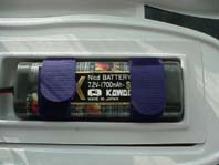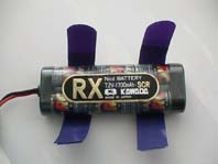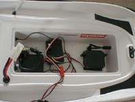 | ラダーサーボは双葉の3003。 モーターオンオフのマイクロスイッチを 動かすサーボも双葉の3003を使用。 受信器は双葉の122 ニッカドはマジックテープで固定 するようにしました |