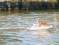 電動ボートです。 コーナーリングも含めて非常に安定した走行姿勢です。