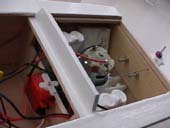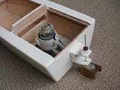 | 電源は単3型ニッカド12本で14.4V アンプは前に作成したブースター アンプを使用しました (後進回路をカットして前進のみ にして使用しました。 ポンプでは 後進できませんので。) |