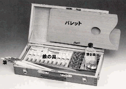 1.油絵の具●基本色の12色セットを購入します。描いていて混色が難しい時は市販品を使った方が鮮明に描けます。 (混色するほどに色は濁り透明感が失われます。) |