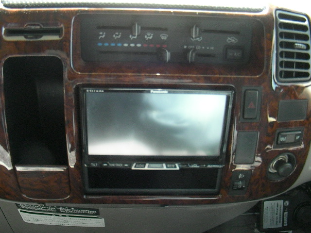 地デジ対応のカーナビを搭載し、邪魔なモニタを外してカーナビのモニタでバックカメラの映像を表示するように変更しています。