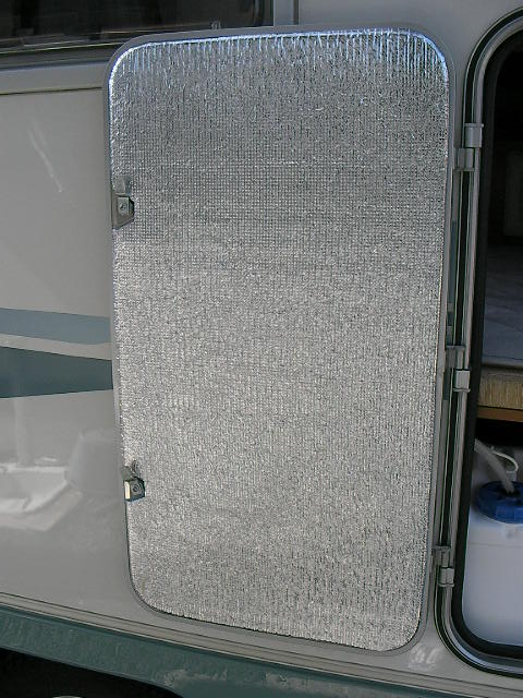 後部2段ベットで寝ていると、バゲッジドアから冷気を感じるため、銀マットで断熱しています。
