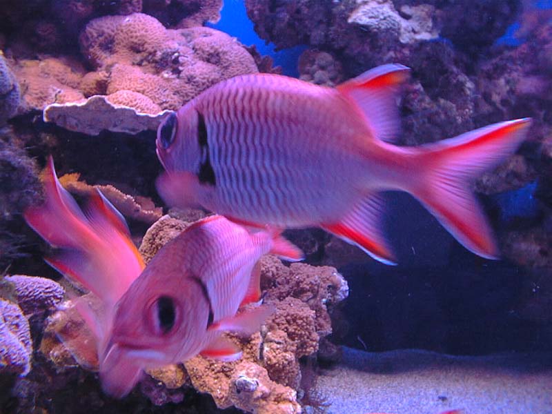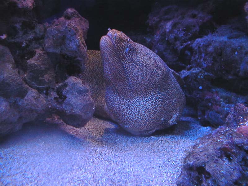 入ってすぐの水槽で写真を撮っていたら、白人のスタッフが話しかけてきました。日本語がとても達者です。2億円かけて作った。水槽の珊瑚はすべて本物。珊瑚を瞬間接着剤で付けた。水の循環システム(海の水を濾しているそうです)。寝るときに粘膜を張って臭いを出さないようにする魚がいるそうだが、天敵が居ないので粘膜を出さなくなる。餌をたっぷりあげるのですぐに大きくなる。というようなことを説明してくれました。