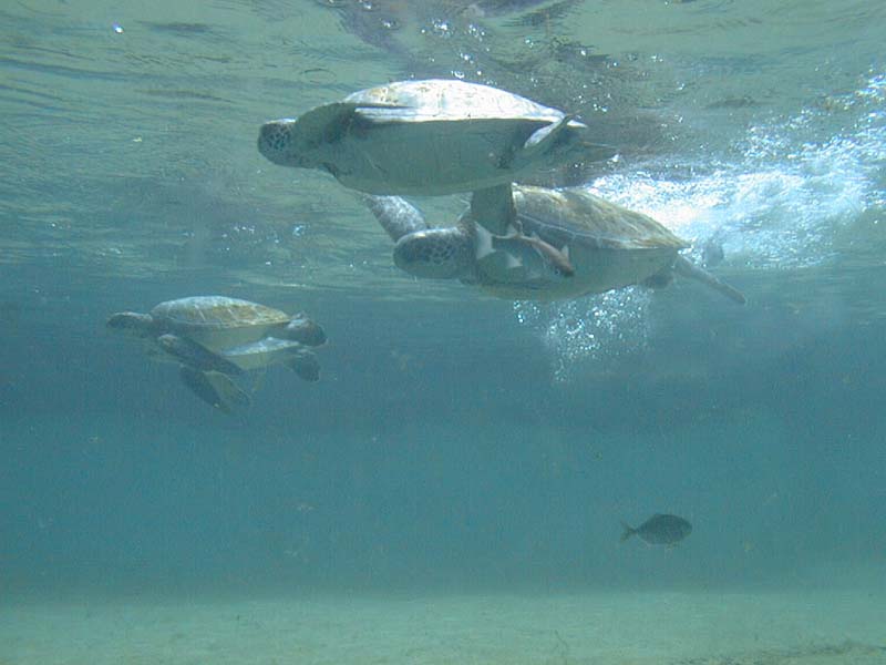 先ほどのスタッフが3時からウミガメの餌付けがあるから見に来て、と言っていたので3時過ぎに見に行くと人だかりの中で彼が説明してました。ウミガメは魚の切れ端の他レタスなんかも食べてました。