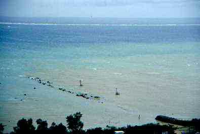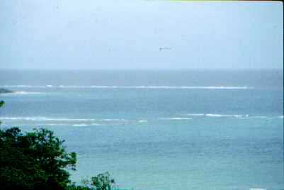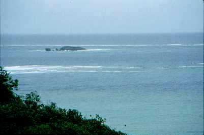沖縄のバス代は安くて助かります。バスの停留所からほんの少し歩いたところに絶好のスポットがありました。 時々、殴りつけるような雨が降りましたが、それでも南国の海の色を見せてくれます。