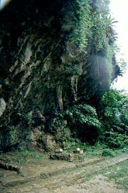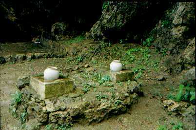 サトイモ科? うたきは小高い丘の上にありました。木々の生い茂るそこは、新宮にある浮島の森に似ていました。どこか懐かしい森の風景。紀州も琉球も同じく黒潮の民なのだと感じさせてくれます。 水が滴りおちて、この白いつぼへ落ちてゆきます。 せいふぁうたき。どうしても自分の目で見てみたかったのです。