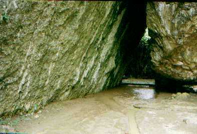 この小さな滝はうたきの入り口にありました。地元の人でしょうか、ポリタンクを持って水を汲みにきている人を見ました。でも、豪雨のため濁ってしまっていたようです。