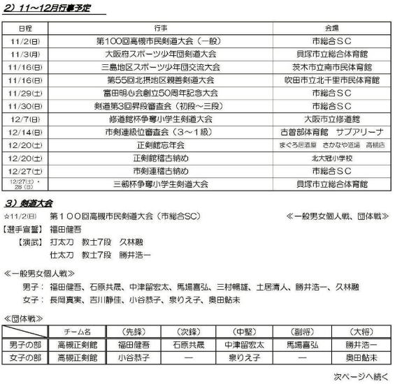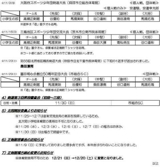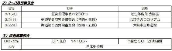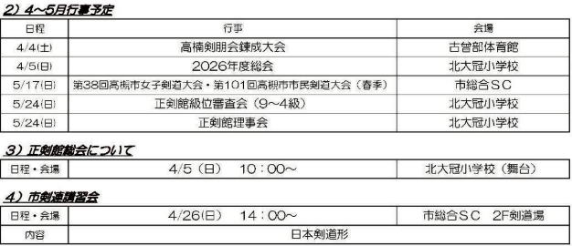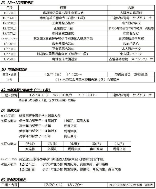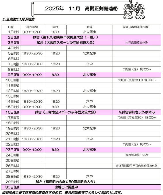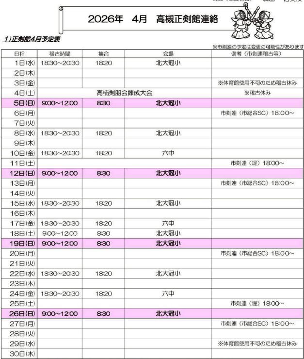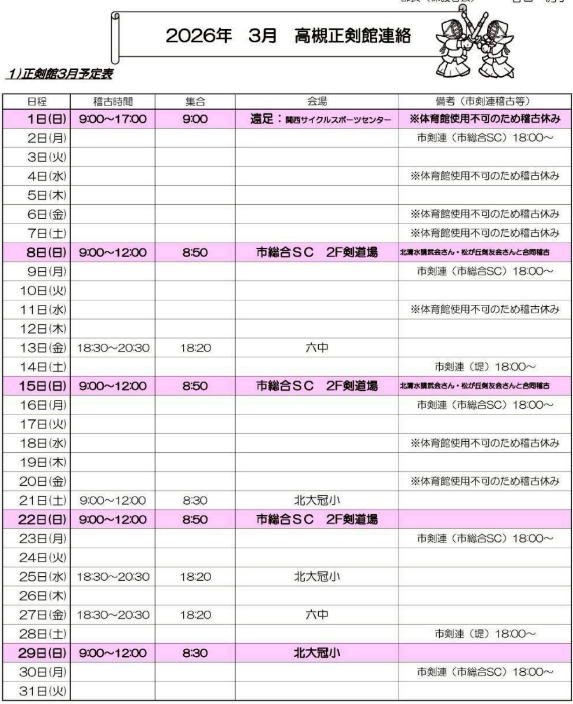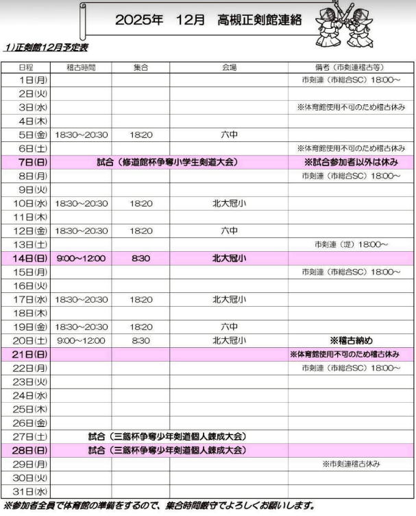 稽古日程・行事日程・お知らせ