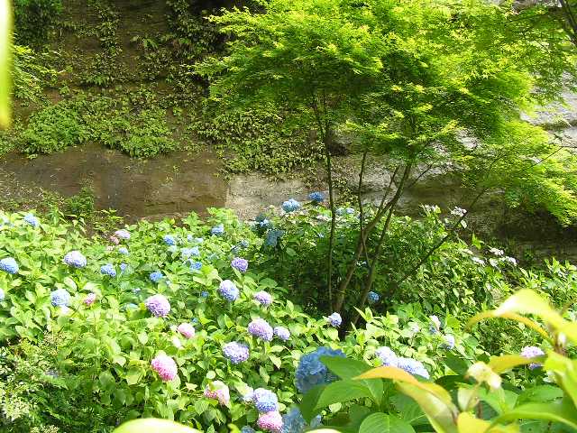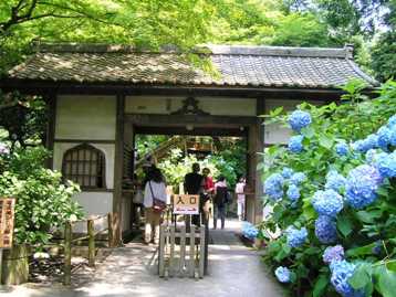 総門付近のあじさい(この寺の紫陽花は青い色が殆ど)