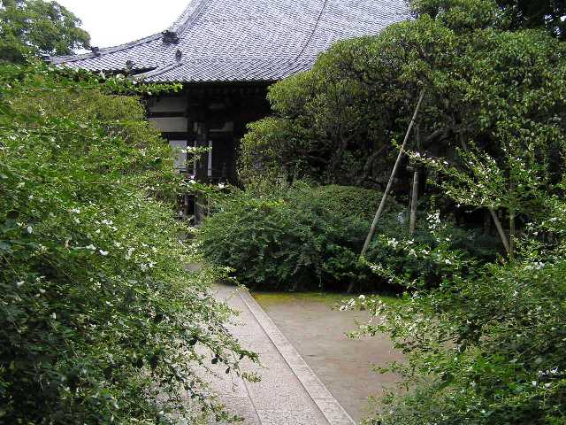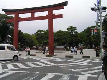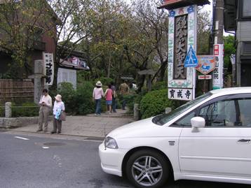 鶴岡八幡宮前を右折し、______車の多い道の突き当たりにそのお寺はある