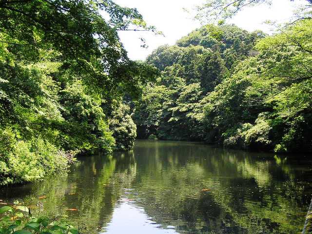 緑・緑・緑を写す湖。その昔灌漑用の人造湖とのこと。