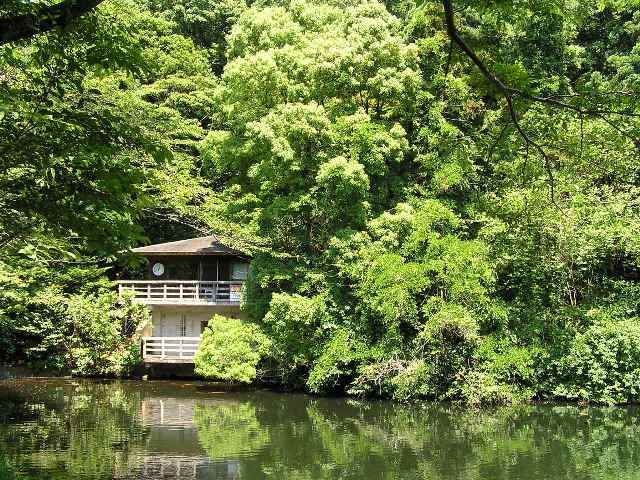 通称鎌倉湖は緑一杯。ウィークデーは訪れる人は少ない。