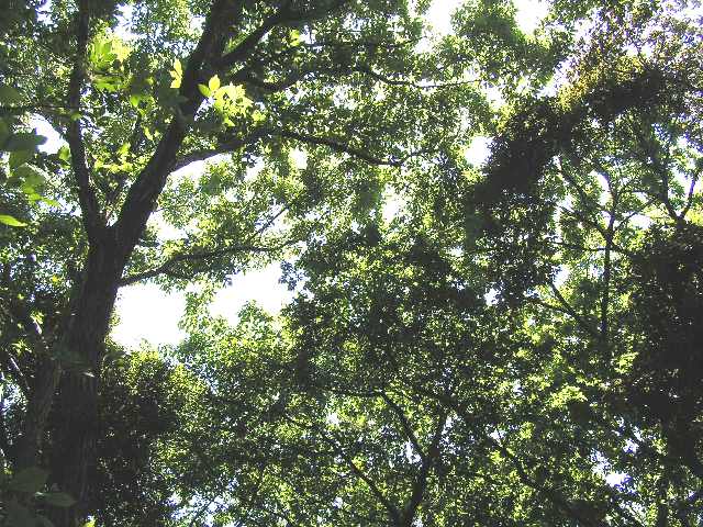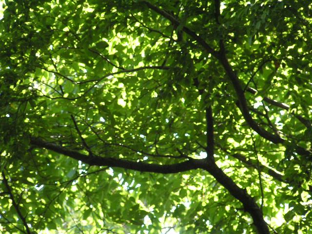 急な山道(馬の背の径)を登った頂上は雑木林で見晴らしがなかったが、くぬぎの新緑 が美しい。