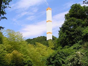 鎌倉市の今泉クリーンセンターがすぐ近くにあり新緑と青空に映える。