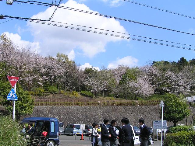 城址の入口にある駐車場_____頂上にある下の広場の桜