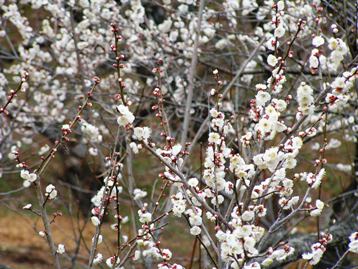 一部で早咲きの白梅が見頃であった。