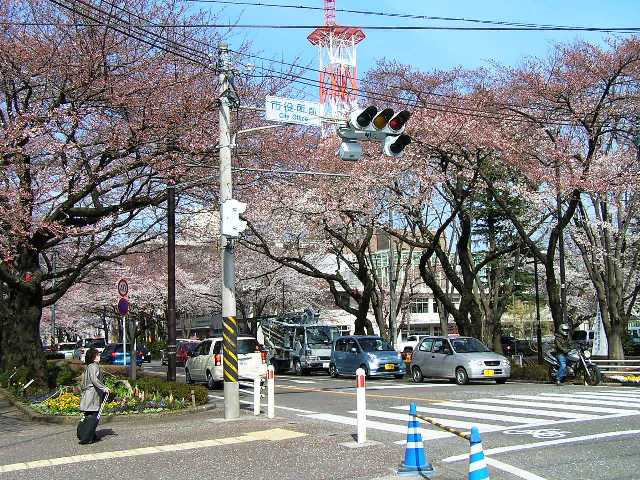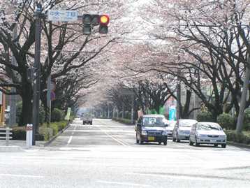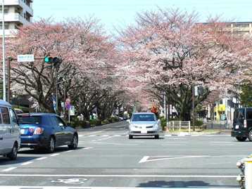 16号線を渡り中央一丁目から桜並木が始まる___消防署前を通り西南に延びる