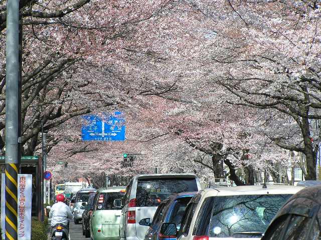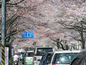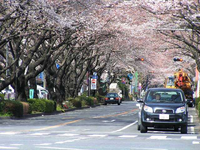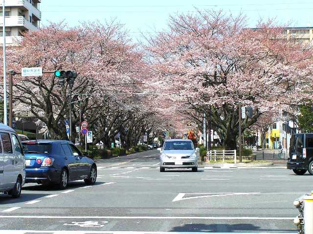 桜のトンネルは市役所を挟んで2本有り、1本は16号線から始まり、さくら通りは16号線を横切り、延びている