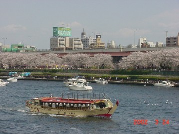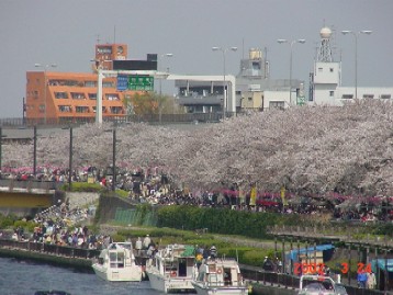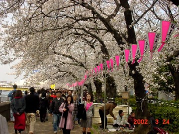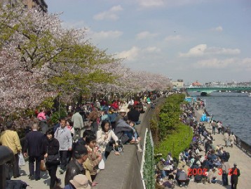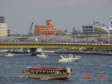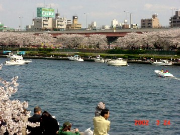 両岸が隅田公園、左岸の櫻、前方は櫻橋_________言問橋から右岸の櫻を観る