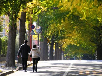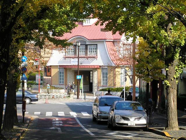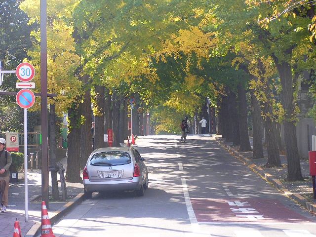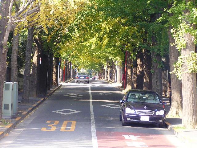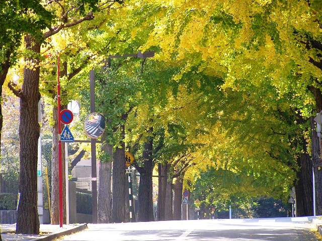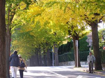 東横線田園調布西口駅舎___________右側の銀杏並木