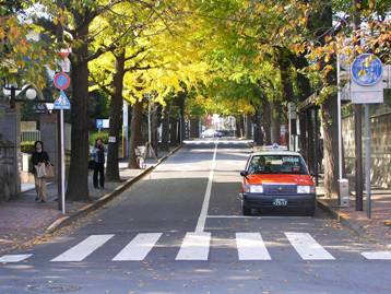 東横線田園調布駅前から放射線状に3本の銀杏並木、休日なのに駅前は大変静か