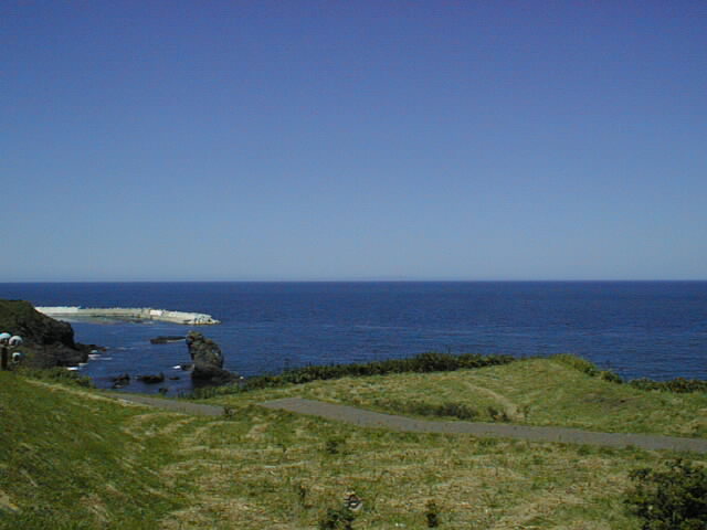 (左) 「上ノ国もんじゅ」から奥尻島方向を望む。 |