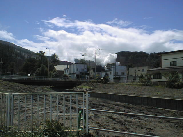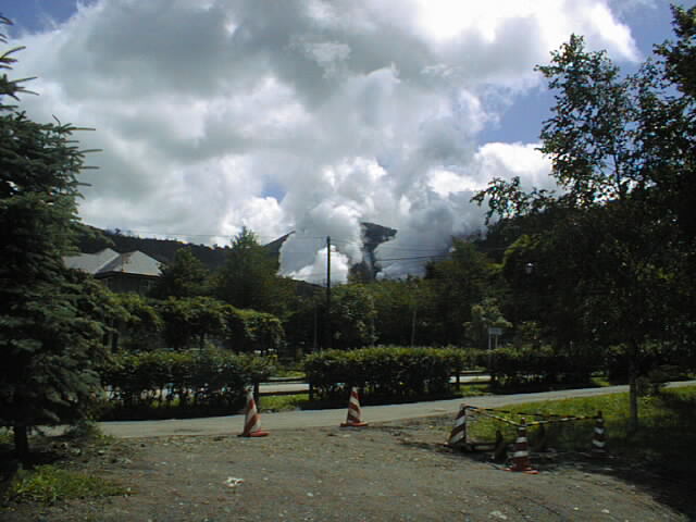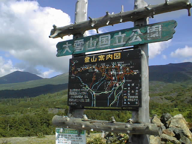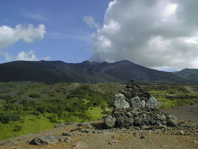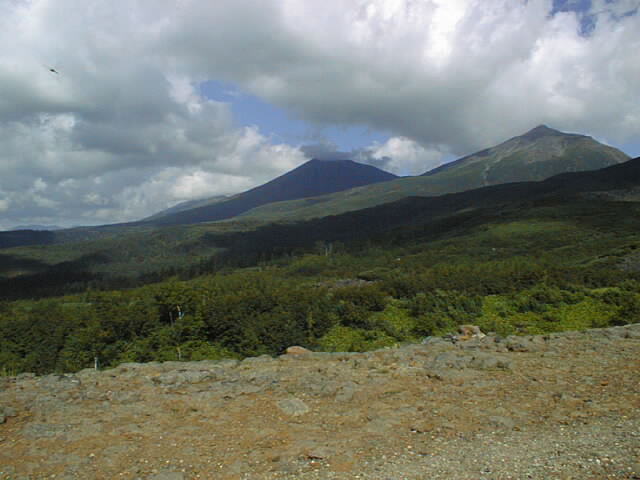 十勝岳温泉の麓から十勝岳山系を望む。 |