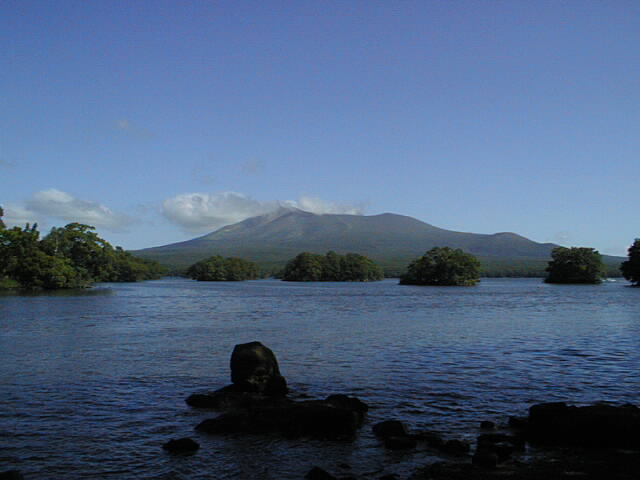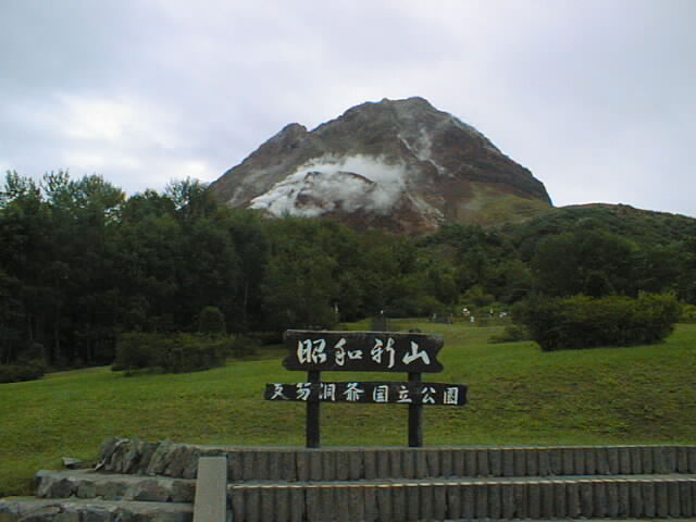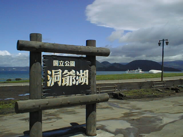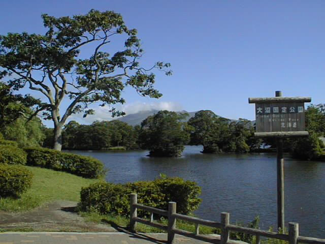 (左) 「大沼国定公園」の看板をバックにした大沼公園。 |
