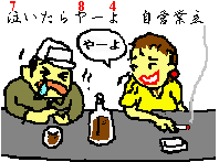 こんにちは、只ちゃん太です。旅にでました。で、遠く小笠原諸島の空の下から旅日記をお届けします。これで私もモバイルの立つじん(図参照)です。でも失業中です(1997ねん10月当時)。