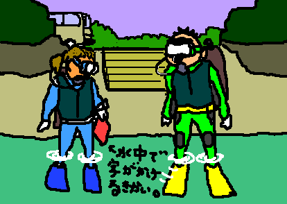 おがさわらにきたらやってみたかったことに「しーかやっく」と「だいびんぐ」があります。きょうはそれをやってやろうとおもいおしえてくれるみせにいってみました。すると「たいふうがきているのでふねはみんなつないでしまいます。」といわれました。それにきょうはおがさわら丸がしゅっこうするひなのでかやっくの一日こーすもありません。でもごごからだいびんぐをおしえてもらうことにしました。