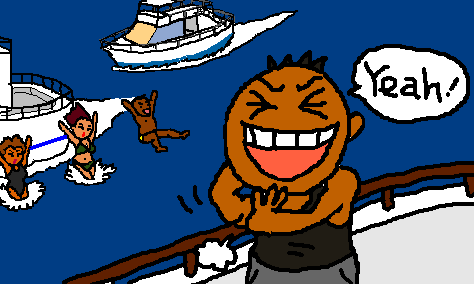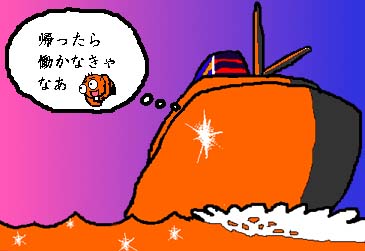さあこれから25じかんのふなたびです。ひろいひろいたいへいようを、ふねはずんずんすすみます。