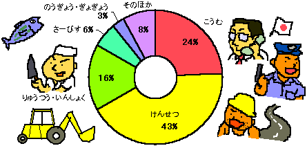 あさ、にづくりをしながら、もってきていた「こうきょうこうじ」についてのほんをよみました。そのほんによれば、おがさわらではせいさんがくの43ぱーせんとがけんせつぎょうによるものだそうです。