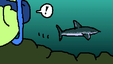 ゆうびんきょくでにもつをおくって、ふなでの2じまではじかんがあるので、どこかでおよごうとおもいました。しゅのーけるにめざめたぼくは、まえにだいびんぐをおそわった「みやのうら」までいき、もぐってみました。「かいちゅうこうえん」ほどではありませんが、さんごしょうのなかを、いろとりどりのさかながおよいでいます。70せんちくらいのさめもいました(たぶん、「ねむりざめ」)。