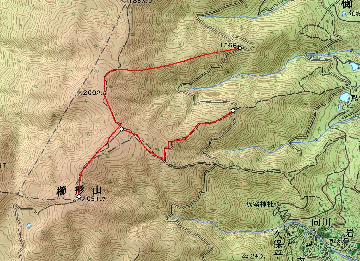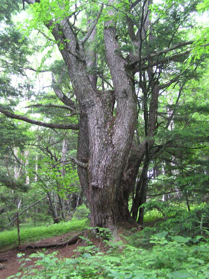 裏側の丸山林道側からは頂上直下の1850メートルくらいまで車で行けるが、このルートでは風情がない。