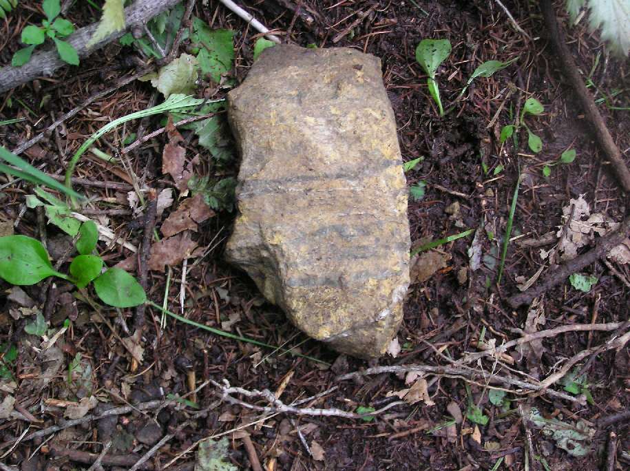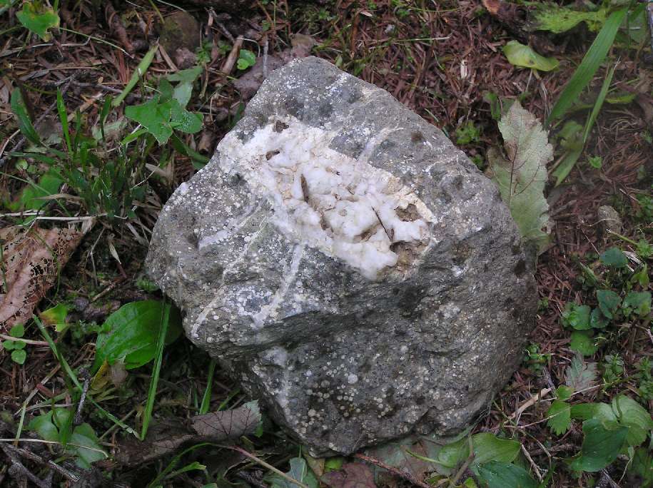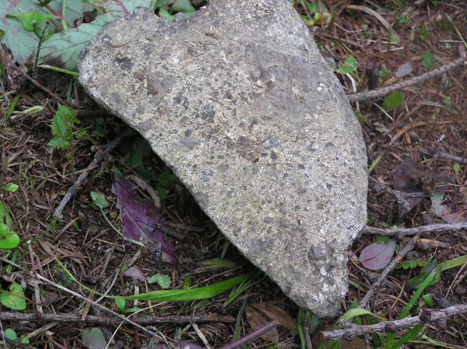 さて、登山道はおおむね土で覆われていて、岩石を見かけることは余り無いが、それでも、足下にころがる石をよく見ると、海底火山のなごりの岩石だ。