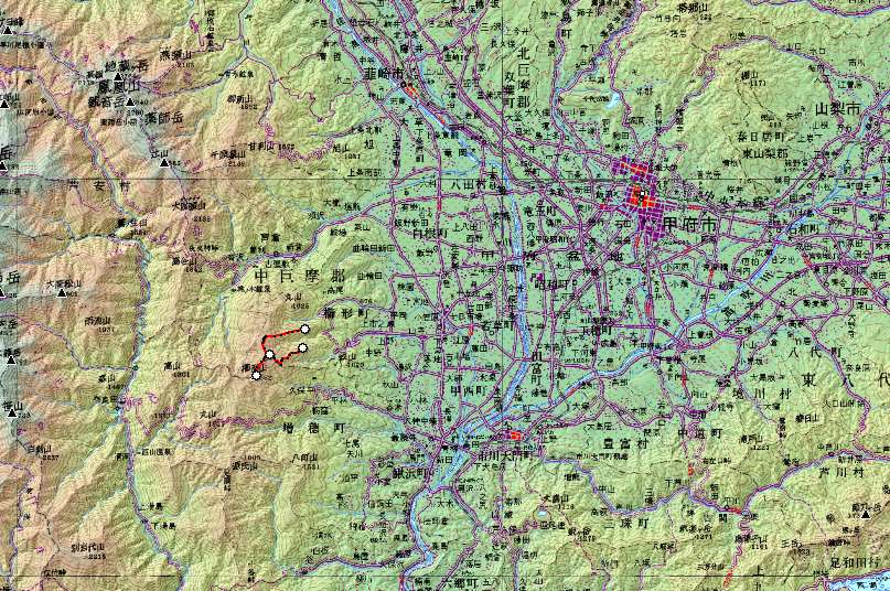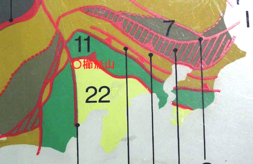 というわけで、南の海からやってきた外国産の海底火山のなごり、これが巨摩山地の先端に位置する櫛形山というわけだ。