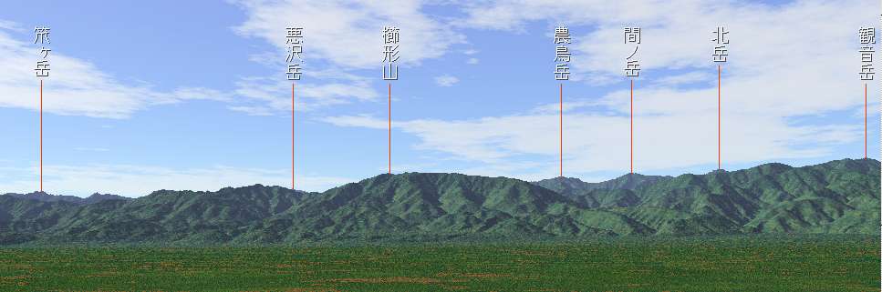 甲府盆地から見た櫛形山<山岳展望ソフト カシミールで作成>