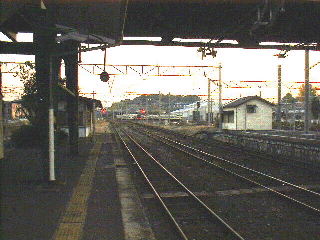 鹿児島本線との乗換駅、折尾で乗客の大半が入れ替わる。ここには、鹿児島本線との連絡線があり、黒崎、小倉に直行する列車はそれを使う。ホームも離れていて変則的。