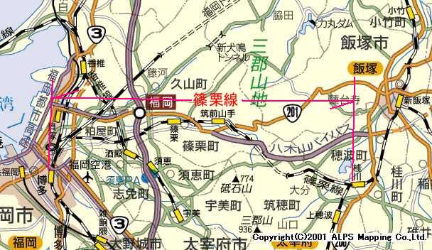 線区の愛称名は意味不明で、語呂も良くなく、あか抜けないが、元は、篠栗(ささぐり)線と筑豊本線の一部。(左記略図参照、JR九州HPから引用)
