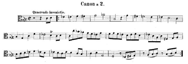 この曲集に含まれる「カノン」の楽譜は、実は「謎解き」として書かれています。