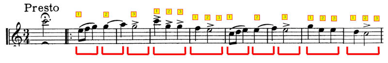 譜例6:ドヴォルザーク/交響曲第8番・第3楽章トリオのリズム書き直し