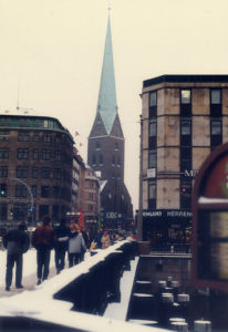 私がその昔ハンブルクを訪れたのは、冬の12月でした。記録によると、12月14日朝にハンブルク入りし、1泊して翌12月15日に南ドイツのニュルンベルク近くに移動しています。