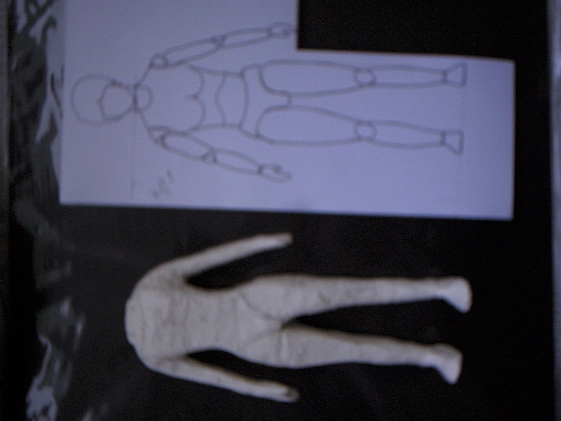 (1)まず型紙に合わせて粘土を切り,人型に切りぬく