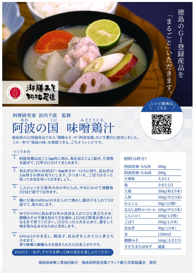 徳島のお味噌「御膳みそ」が国の地域の自然や伝統文化から生み出された特別な産品に与えられるGIに登録されました。県内では、すだち、阿波尾鶏、木頭ゆずに次ぐものです。