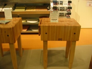 Chef Centralお料理がテーマのお店。調理器具からお皿、パスタやソース・調味料までを扱ってます。プロ用のキッチン道具と思えそうなものも売っています。Butcher block table(写真)なんて自宅で持ってる人のいるのかな?? これも小さい卓上サイズのものもありますが、これってインテリアとしてもいけますね。今日はお煎餅のような食感のものを子供のために買ったけど、「ごまがいや!」と不人気でした。残念・・。気になったのは、グラタンなどに焦げ目をつける"Creme Brulee Torch - BUNJOUR -"($29.99, )と9pcセットのガラスボール(23cmから3cmまである)でした。