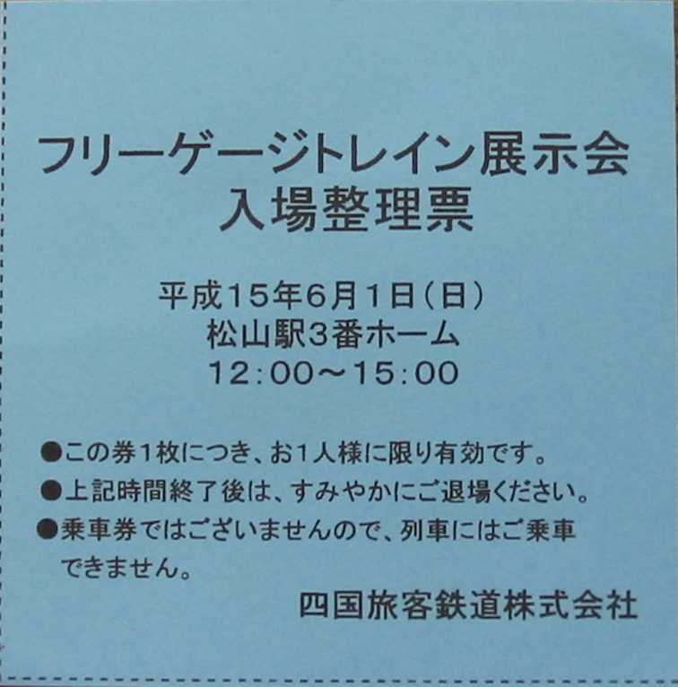 右は、当日松山駅展示ホーム(3番線)への入場整理票です。