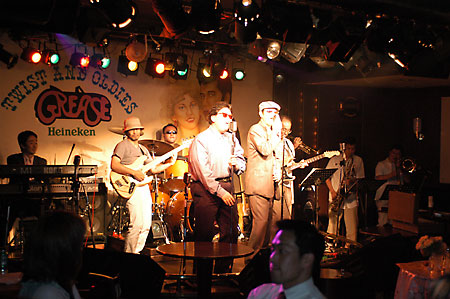 ドラマーの上野氏が転勤により、中国に赴任することになりました。 ここ数年 バルタンポップのドラマーとして 一緒に演奏する機会を得ましたが、 バルタンポップでの活躍は見事なものであり、私にとっても楽しい思い出であります。 1999年 6月 "横山さん結婚式ライブ" でバルタンポップに初参加!! 上野のパワフルなドラムが 当時やや低迷していたバルタンポップに 勢いを与えてくれました。 2003年 7月 "大江さん結婚ライブ"の様子は以下の写真をご覧になってください。 見た目もサウンドもプロミュージシャンのごときであります。 さて、中国 での音楽活動は? 帰国時には 三千年 の歴史と融合したNew上野が見られるか? 楽しみに待ちましょう・・・先日、増沢がタイへ転職したばかりですし、 このことろ MMS OB も国際的になったものです。 私の知っている限りで、海外赴任しているMMS OBを挙げると ・藤田(59年入学) シンガポール ・増沢(57年入学) タイ ・上野(60年入学) 中国