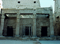 ラムセス2世の中庭で当時作られたものと違うものがある。それはこの遺跡が砂にうまっていた時、上のほうだけ使ってモスクがつくられました。今では、その入口は封鎖され、反対側に入口がつくられ、現在でもモスクとして使っている。また神殿の奥の部屋にも、キリスト教の絵が残っていたりする。